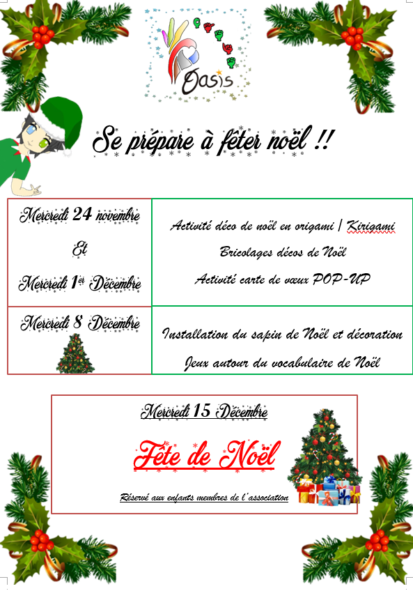 Puis ils pourront décorer leur sapin et la salle en préparation de la fête de Noël du 15 décembre où sont invités tous les enfants membres de l’association. (Un mail va vous être envoyé pour les détails)