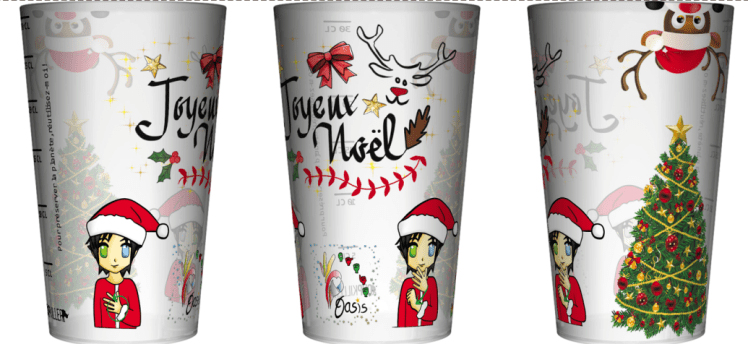 Gobelet « Joyeux Noël » avec dessins des signes « joyeux » et « noël »,